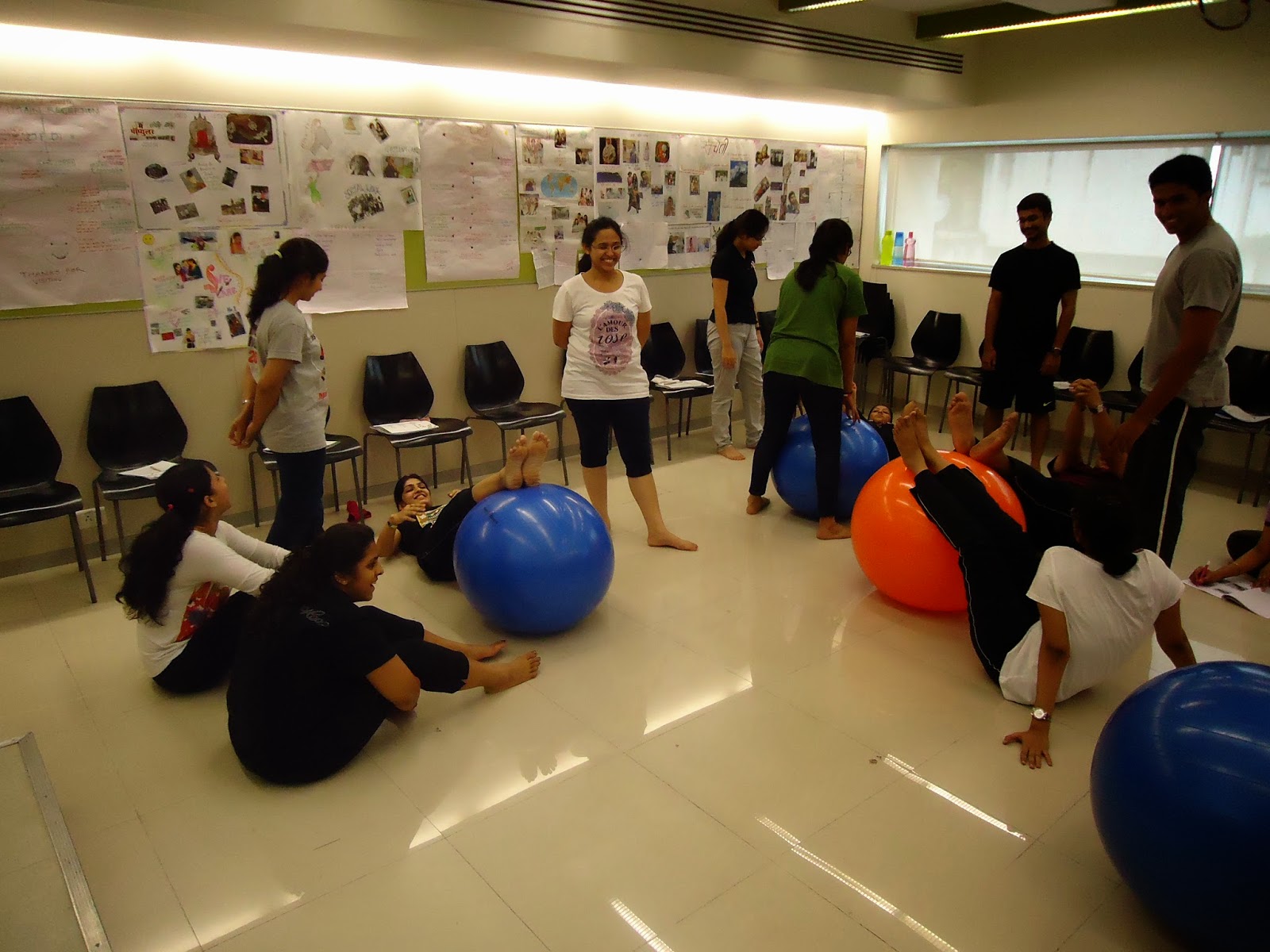 The workshop has 24 delegates and used 6 gym balls and 1 BOSU ball for helping the delegates practice with comfort and ease. Also this helped develop a group activity and a sense of team work in all the delegates along with care, support and togetherness.